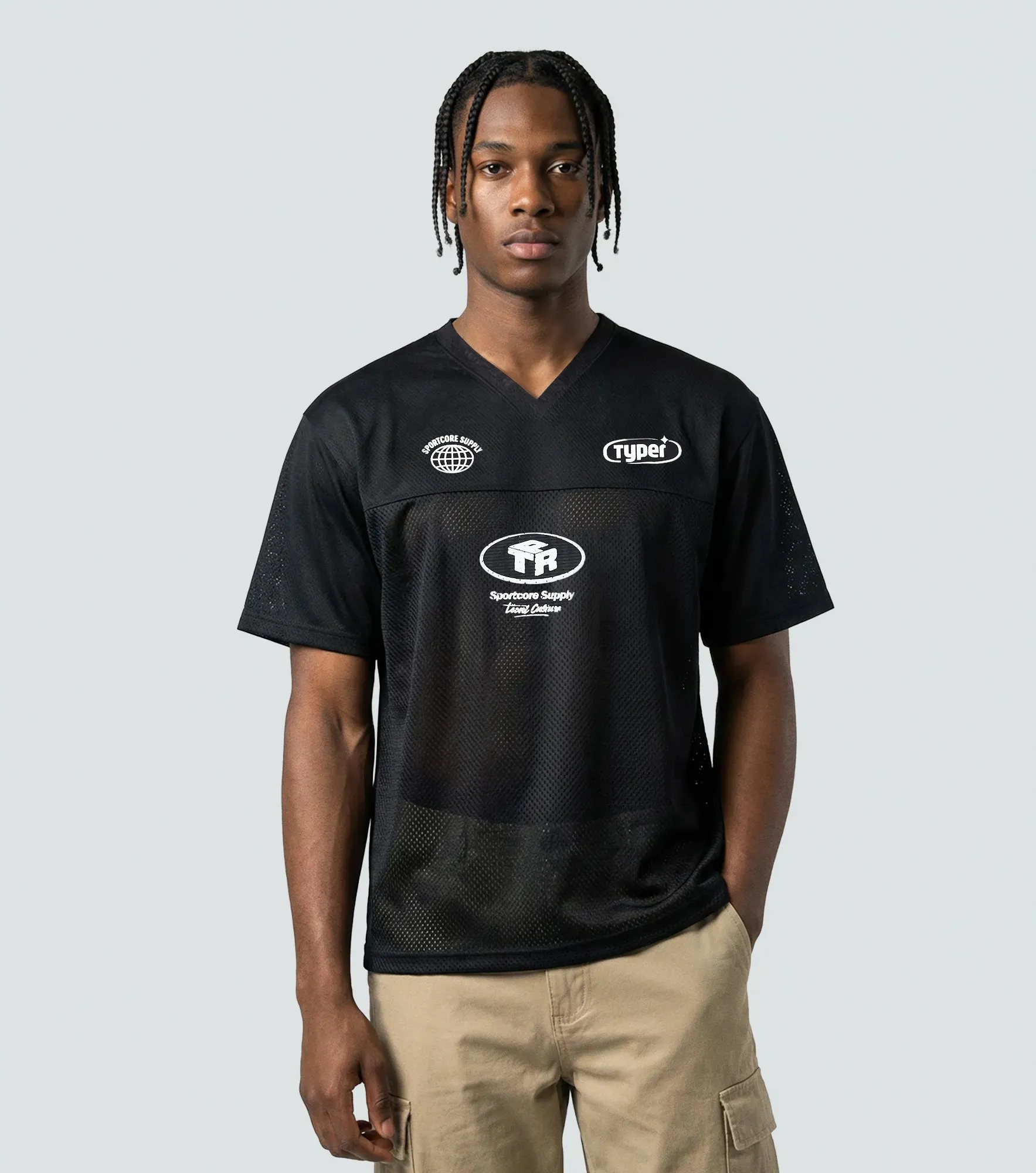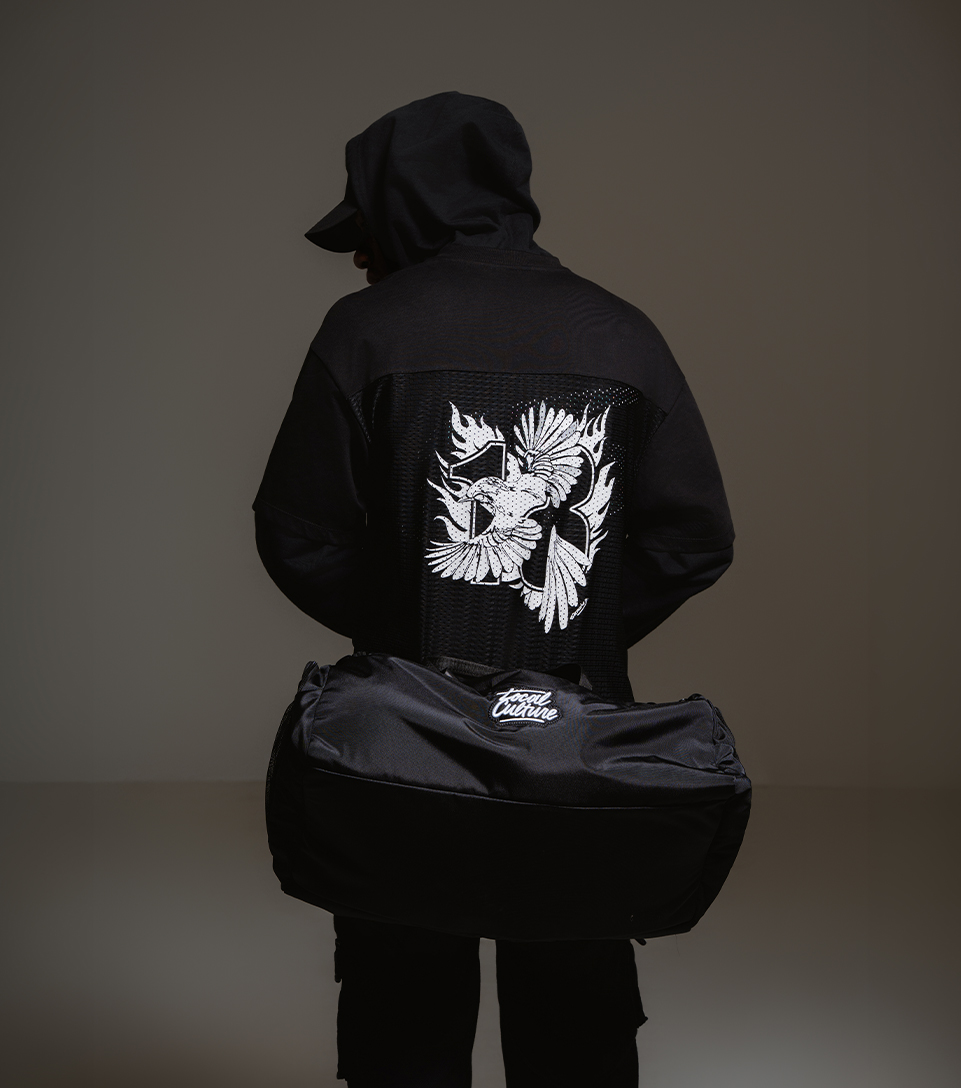 Un look que domina desde las sombras. La camisa negra con unos graficos que sobresalen en la espalda, aporta estructura y carácter, mientras el buzo debajo suma profundidad y una vibra layered muy street. La gorra clara rompe el tono oscuro con precisión. Minimalismo con misterio y actitud.